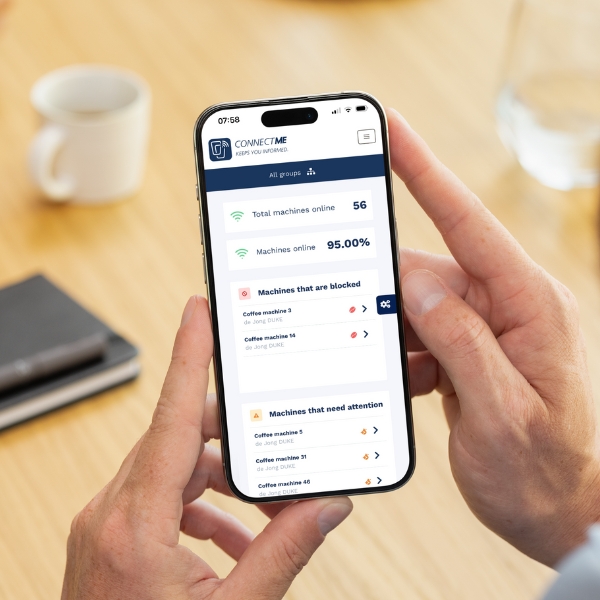 Mit dem Zwei-Wege-Konnektivitätstool ConnectMe können Sie alle Kaffeevollautomaten von de Jong DUKE in Ihrem Bestand ganz einfach remote verwalten. Diagnostizieren und lösen Sie Probleme von Ihrem Schreibtisch aus. ConnectMe bietet zahlreiche Vorteile, so können Sie z. B. Daten erfassen, den Verbrauch ermitteln und vorbeugende Wartungsmaßnahmen planen.